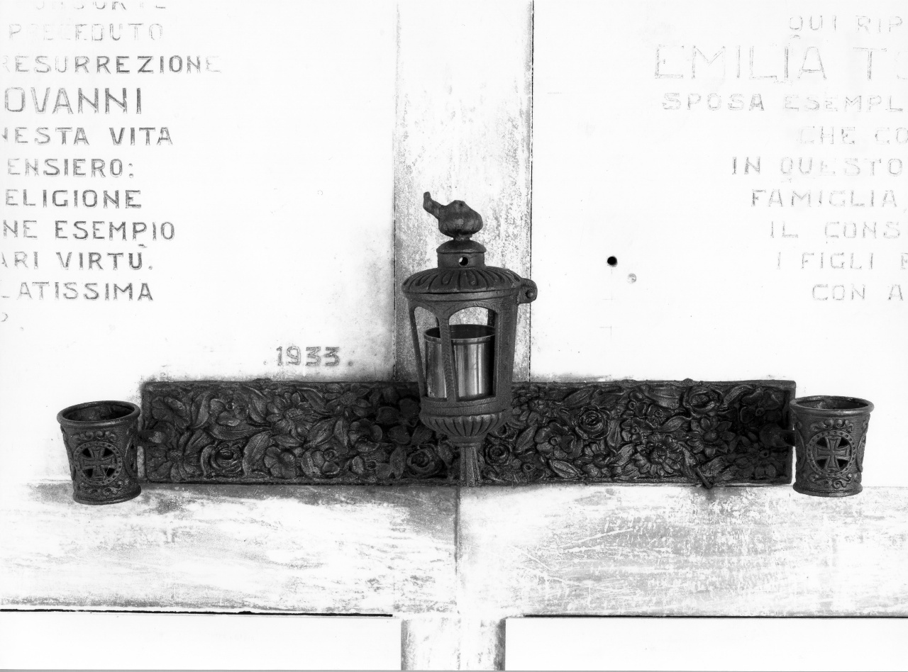 - NOTIZIE STORICO CRITICHE Il portavaso, il cui stile ricorda lo stile floreale in uso fino al 1914 c a., rientra in una produzione di tipo seriale piuttosto diffusa negli arre di cimiteriali degli anni '30/'40