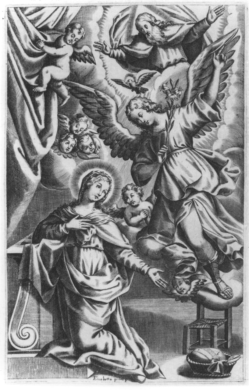 - ISCRIZIONI in basso al centro - ELISABETTA PICINI F(ECIT) - Piccini Isabella - lettere capitali - latino