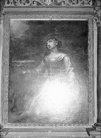 Pala d'altare. S. Lucia in atto penitente che sostiene un piatto con sopra due occhi