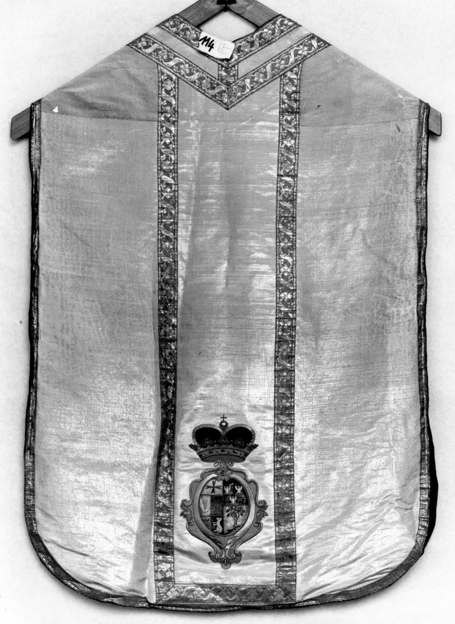 - NOTIZIE STORICO CRITICHE Il paramento è Ottocentesco nella decorazione del gallone e nella ornamentazione dello stemma che decora la pianeta, ma che non ci è stato possibile attribuire