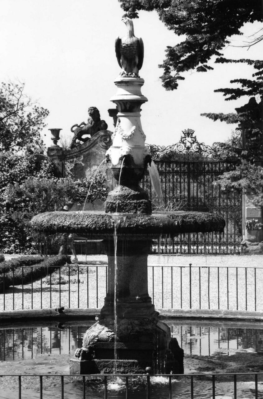 - NOTIZIE STORICO CRITICHE La fontana si trovava nel giardino verso sud-est ed era sormontata da una statua, oggi perduta. Si ignora l'epoca del trasferimento e della collocazione dell'ottocentesca colonnina con l'aquila