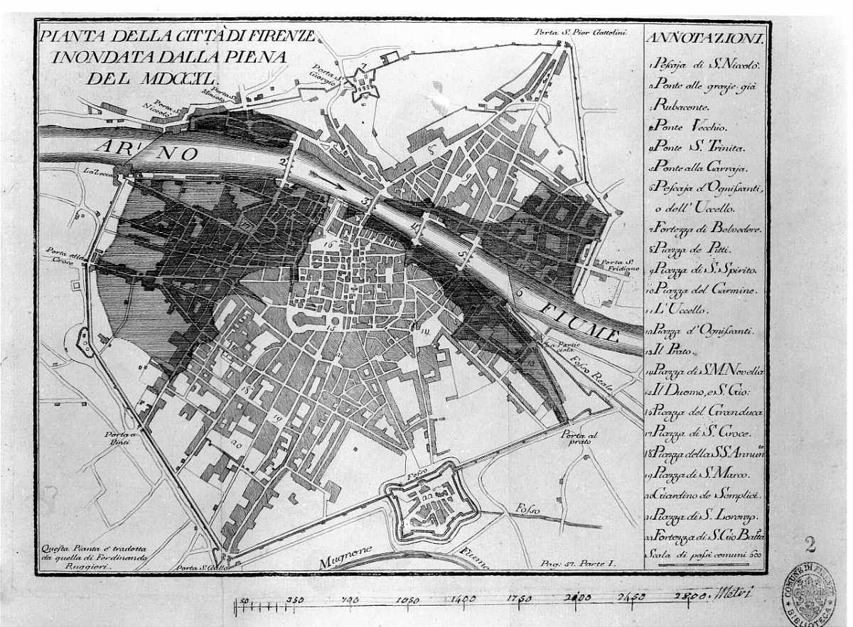 PIANTA DELLA CITTA' DI FIRENZE INONDATA DALLA PIENA DEL MDCCXL. Pianta di Firenze