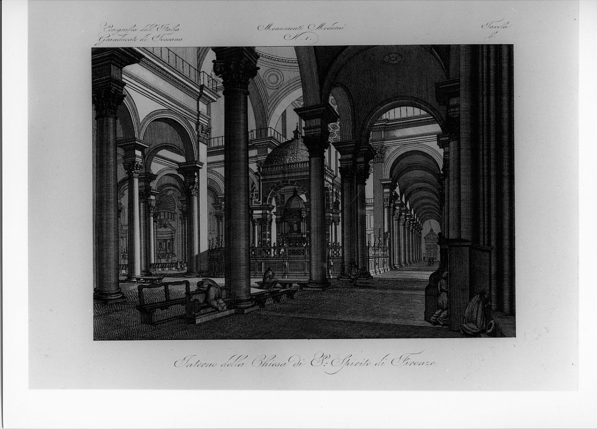 - ISCRIZIONI sotto l'immagine - Interno della chiesa di S. Spirito a Firenze - corsivo -