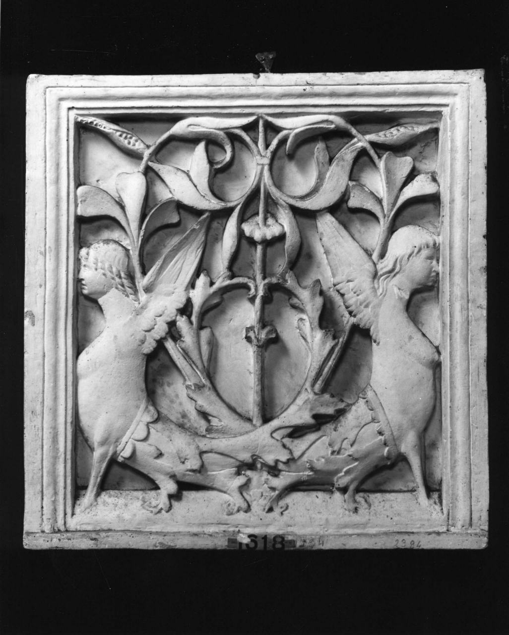 Calco di formella ornata in bassorilievo figurato. Gesso da forma con gelatina