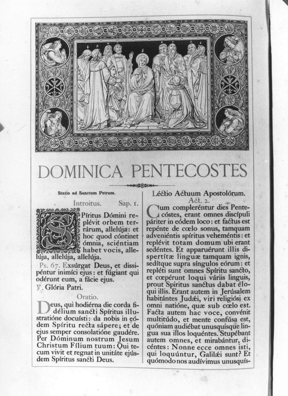 Personaggi: Maria. Figure: angeli; apostoli. Oggetti. Decorazioni