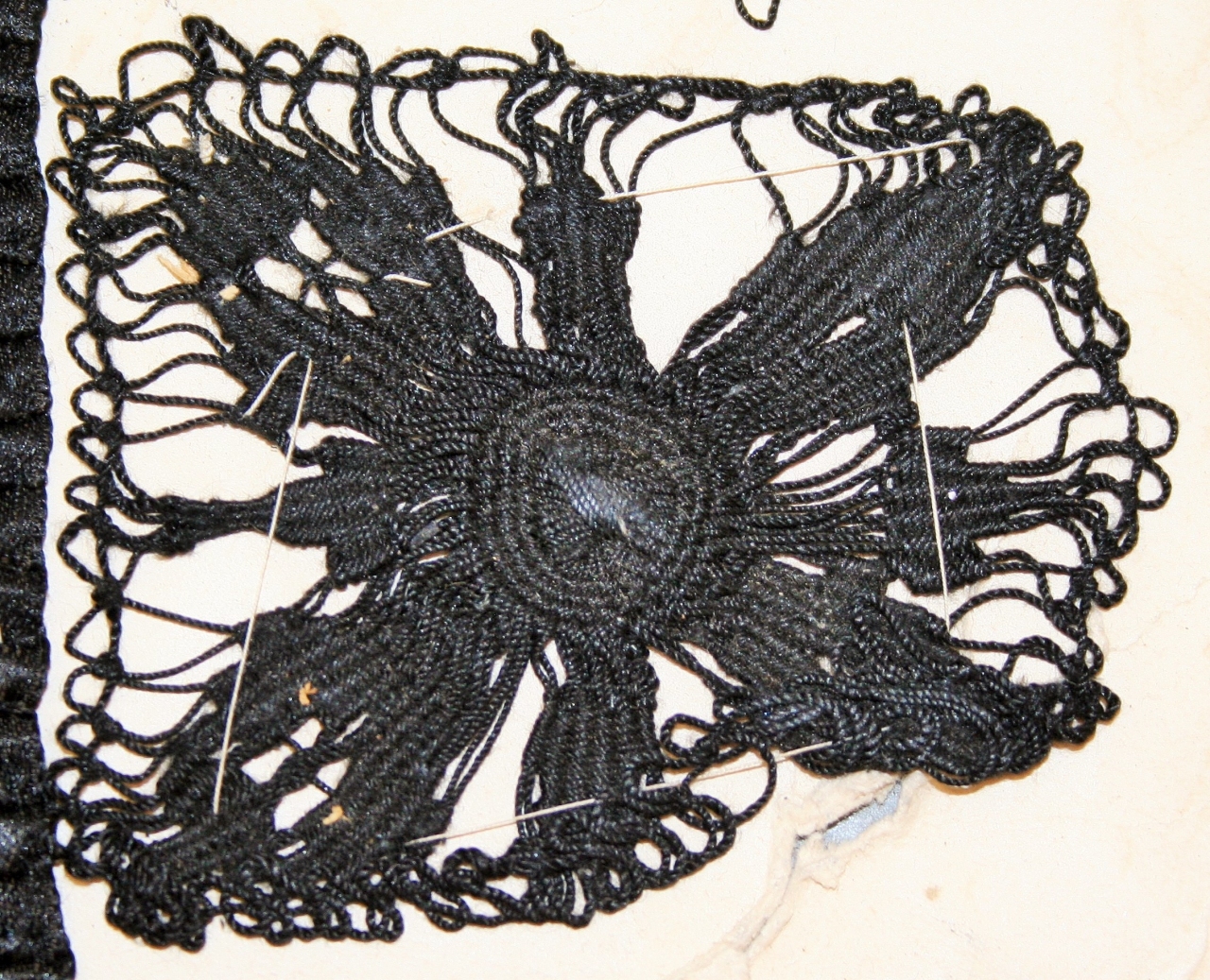 Merletto macramé con decoro a stella, realizzato in filato di cotone nero