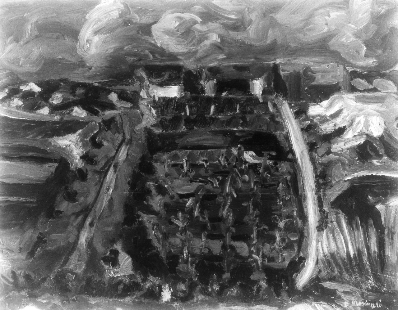 - NOTIZIE STORICO CRITICHE Il dipinto fu realizzato da Bruno Cassinari negli anni di adesione al movimento di Corrente ed è solitamente datato verso il 1941-1942. L'opera fu esposta al IV Premio Bergamo (1942), mostra che ospitò in quell'anno quasi tutti gli artisti aderenti a "Corrente" quali Birolli, Guttuso, Migneco, Valenti, Morlotti. Il "Ruscello verde" di Cassinari è caratterizzato da una intensa vitalità e dal fluire delle emozioni espresse per mezzo dei toni brillanti dei colori e della stesura materica mossa e vibrante. Soluzioni post-cubiste si avvertono d'altra parte nella tendenza a tradurre i volumi in tasselli di colore che costruiscono la struttura del dipinto. Per la bibliografia si rimanda alla scheda del catalogo "Corrente - Il movimento" (1985). In base al cartellino apposto sul retro il dipinto sembra essere stato esposto nel 1963 alla mostra di Renato Birolli a Verona e a quella degli Artisti di Corrente tenutasi a Ivrea e a Milano