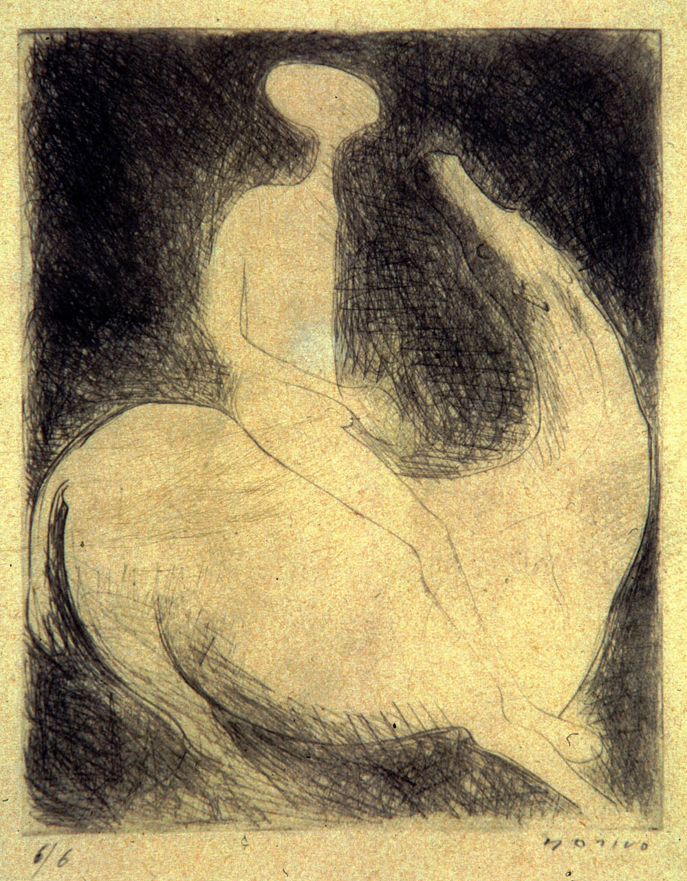 - NOTIZIE STORICO CRITICHE Nel 1943 Marino Marini, riprende la sua attività di incisore dopo un inter vallo di ben venti anni; durante i quali si dedica prevalentemente alla pi ttura e alla scultura; realizzando nel 1929, la sua prima fondamentale scu ltura, che dette l' avvio alla grande impresa plastica di questo artista, una terracotta intitolata "Popolo". Da questo momento, sì, la scultura div enne il motivo centrale della sua esistenza benchè, tuttavia, non un motiv o esclusivo, dal momento che grafica e pittura continueranno ad interessar lo attivamente nel proseguire degli anni. Nel '43 dunque, quando riprende l' incisione, lo fa già all' interno delle prove che sta affrontando in sc ultura. Le tredici puntesecche che egli traccia in quest' anno ripetono in fatti i soggetti e le forme che appaiono nelle statue dello stesso periodo . Da questo punto di vista sono di una rilevante importanza, perchè metton o in evidenza il nascere e il prendere consistenza dei primi prototipi del l' immaginazione mariniana: le Pomone e i Cavalieri. Anche il segno inciso rio è diventato più fermo e più agile, ormai incline a definire la forma c on maggiore essenziale energia, provandosi anche nel puro contorno, che ch iude l' immagine dentro il margine di una linea risoluta, senza pentimenti . Il soggetto dei "Cavalieri" è senz' altro quello più famoso e conosciuto dell' artista pistoiese. Il cavaliere come riferimento al monumento eques tre può essere letto di volta in volta secondo una chiave diversa. L' uomo a cavallo può essere davvero un guerriero, un eroe che grida il suo amore e il suo sdegno, che realizza il miracolo del suo sacrificio, ma può esse re anche il cosciente o ignaro giullare che avvilisce il suo compito di cr ociato alla farsa del clown, nel mondo del dubbio, alla ricerca della sopr avvivenza umiliante. Nel tema del cavaliere Marino Marini alterna moltipli ci significati: eroico, panico, pietosamente ironico o amaramente patetico , già presente nel tema delle Pomone