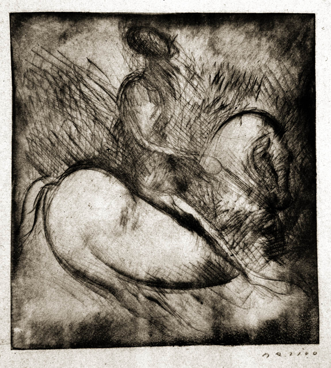 - NOTIZIE STORICO CRITICHE L' artista pistoiese Marino Marini torna a dedicarsi all' incisione nel 19 43, dopo un intervallo durato ben venti anni, durante i quali si era cimen tato nella scultura. Le tredici puntesecche che che egli traccia durante q uest' anno ripetono infatti i soggetti e le forme che appaiono nelle statu e dello stesso periodo. Da questo punto di vista sono di una rilevante imp ortanza, perchè mettono in evidenza il nascere e il prendere consistenza d ei primi prototipi dell' immaginazione mariniana: le Pomone e i Cavalieri. Anche il segno incisorio è diventato più fermo e più agile, ormai incline a definire la forma con maggiore essenziale energia, provandosi anche nel puro contorno, che chiude l' immagine dentro il margine di una linea riso luta, senza pentimenti. Il soggetto raffigurante i "Cavalieri" è senz' alt ro quello più famoso e conosciuto dell' artista pistoiese. Il cavaliere co me riferimento al monumento equestre può essere letto di volta in volta se condo una chiave diversa. L' uomo a cavallo può essere davvero un guerrier o, un eroe che grida il suo amore e il suo sdegno, che realizza il miracol o del suo sacrificio, ma può essere anche il cosciente o ignaro giullare c he avvilisce il suo compito di crociato alla farsa del clown, nel mondo de l dubbio, alla ricerca della sopravvivenza umiliante. Nel tema del cavalie re Marino Marini alterna molteplici significati: eroico, panico, pietosame nte ironico o amaramente patetico, già presenti per altro nell' altro famo so tema dell' artista quello delle Pomone. Questa incisione venne realizza ta e stampata dall' artista stesso in Svizzera; la terra d' origine di sua moglie Mercedes Pedrazzini; nell' atelier del pittore di Basilea Hugo Web er, dal momento che nel 1942 un bombardamento distrusse il suo atelier e l a sua casa. Di quest' opera esistono sei esemplari firmati e numerati da 1 /6 a 6/6