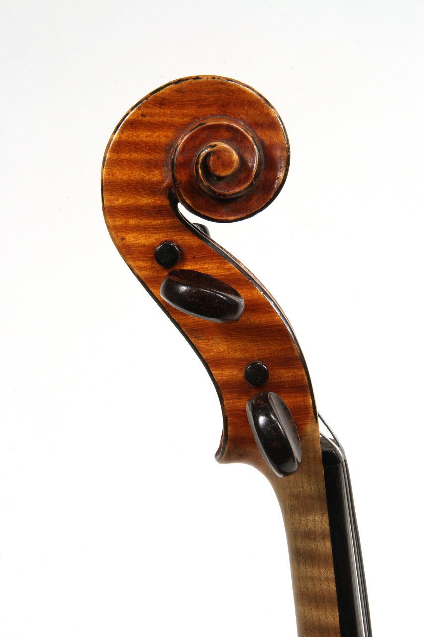 - NOTIZIE STORICO CRITICHE A partire dal 1885 Giuseppe Scarampella acquisisce il titolo di Fornitore del R. Istituto Musicale di Firenze come successore di Luigi Castellani, da poco defunto e nella cui bottega lavorava. E' plausibile che negli anni successivi venga acquisito questo violino per l'uso della scuola. La prima menzione emersa dall'archivio del Conservatorio risale tuttavia al 9 Febbraio 1911, quando lo strumento viene prestato a un certo M° Tagliacozzo. Successivamente sono registrati prestiti al M° Franchetti per uso della scuola nelle date 13 Gennaio 1925, 18 Ottobre 1926 e 16 Ottobre 1927. Il 28 Febbraio 1925 Giuseppe Del Lungo presenta una fattura per aver "ringrossato e rincollato" lo strumento. L'11 Ottobre 1926 è la ditta Leandro Bisiach e Figli a presentare una fattura per la montatura dello strumento (livellata la tastiera, cambiata l'anima, sostituiti i piroli, registrato il ponticello) così come nel 1931 (registrato e ritoccato il manico, livellata la tastiera, rifatto il ponticello, registrazione anima e cambio delle corde), quando lo strumento è passato nelle mani del M° Maglioni. Il 24 Settembre 1939 lo strumento è sottoposto a un intervento di piccola entità (15 Lire) da Silvio Vezio Paoletti e ancora da Alfredo Del Lungo nel 1948 quando viene "rincollata e spianata la tastiera e rimontato lo strumento". Lo strumento, benchè già parte della collezione del Museo del Conservatorio, doveva ancora essere utilizzato nel 1987 quando Carlo Vettori sostituisce le corde. Nel 2002 la tavola armonica è stata pulita da Claudio Arezio, rimuovendo uno spesso strato di colofonia. Il violino è realizzato dal liutaio ventitrè anni dopo aver firmato il suo primo strumento nel laboratorio del Maestro Nicolò Bianchi, a Parigi, e dopo un lungo percorso di attività e maturazione stilistica che ha trovato riscontro nella critica i cui giudizi trovano conferma in quest'opera caratterizzata dalla simmetria. La sguscia prepara al bordo condotto con grande accuratezza e forza, e le arcature si legano ad esso con armonia; il carattere del modello "Guarneri" è ricreato in forma moderna introducendo degli elementi personali come la maggiore compattezza, la C molto curva, la giuntura del filetto piuttosto in dentro e con le giunzioni più allungate. Anche le "effe" sono una stilizzazione idealizzata delle modalità dio forma e piazzamento del Maestro cremonese. Il nero alle colonne delle punte e lungo il nastrino della testa sono ispirati a Guarneri. Come è caratteristico di Giuseppe Scarampella, le "effe" hanno tacche molto oblique e le palette inferiori sono poco scavate. Tipica è la coda del riccio, abbastanza contenuta ma con sguscia profonda e la potenza della scultura della testa, preparata dalla pronunciata curva delle ganasce. La testa sviluppa una voluta a giro ampio, dal perno centrato e con un'esecuzione che non lascia traccia dell'intervento manuale. Lo Scarampella ha scelto i materiali per la loro forza, più che per la loro perfezione, come evidente nella scelta dell'Abete della tavola che mostra un accrescimento irregolare e una evidente macchia nel lato destro