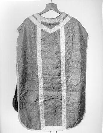 Pianeta corredata di velo, borsa e stola. Fondo viola con galloni gialli