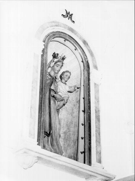 In una nicchia dietro l'altare si trova la statua della Madonna con il Bambino , vestita con una veste rosa ed il velo celeste mentre il piccolo indossa una veste bianca