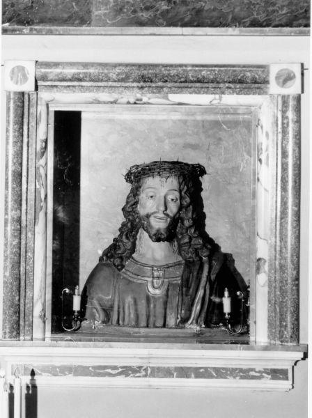 Busto raffigurante Gesu Cristo con veste e corona di spine, si trova all'interno di una nicchia