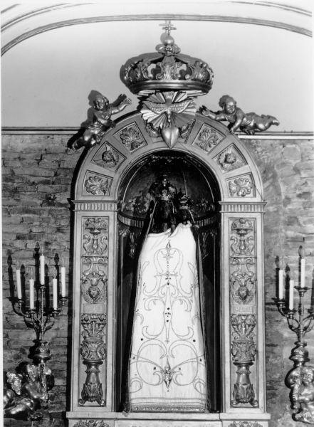 La statua raffigura la Madonna Nera, essendo completamente vestita come quella di Loreto cela il diverso formato degli abiti della statua originaria. La statua si trova all'interno di una nicchia con cornice lavorata