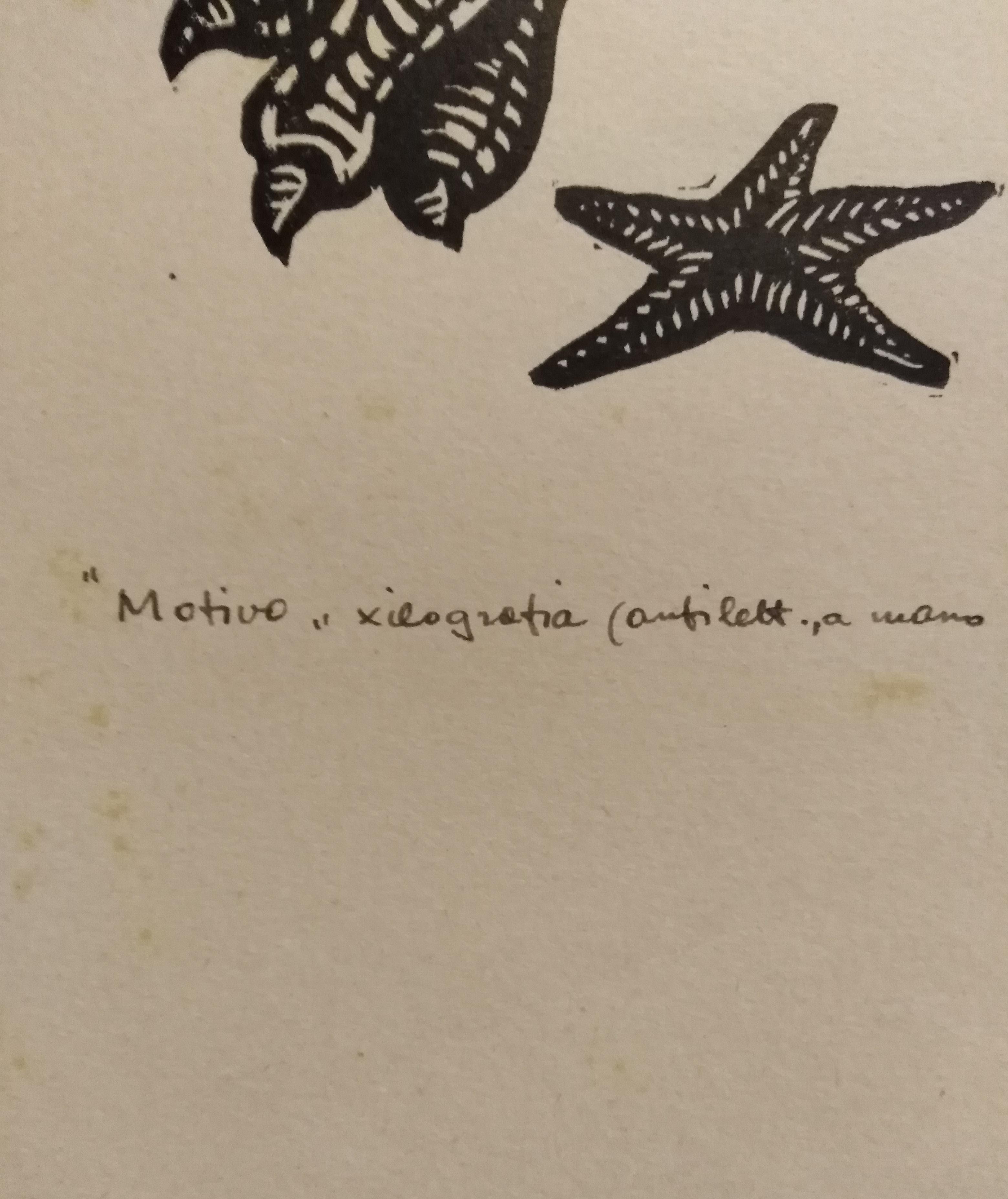 - ISCRIZIONI in basso, a sinistra - " Motivo" xilografia (anfilett., a mano) - corsivo -