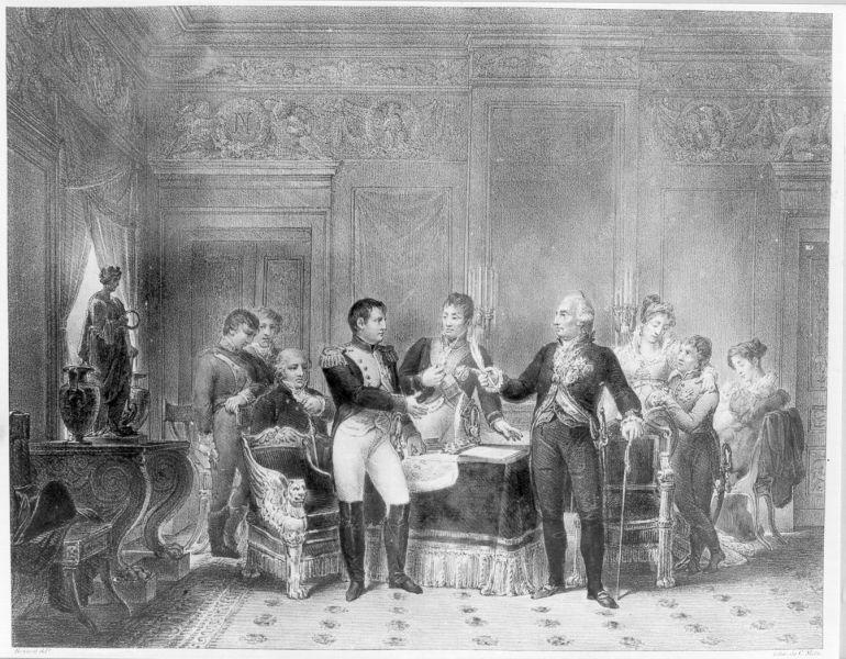 Napoleone I Imperatore dei francesi firma un documento. storie della vita di Napoleone Bonaparte