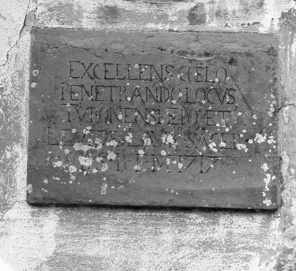 - ISCRIZIONI al centro - EXCELLENS COELO/ PENETRANDO LOCUS/ TURONENSIS EPO, ET/ LEVITAE LAUR.O SACER/ B.S.R.F.M.1717 - lettere capitali/ numeri arabi -
