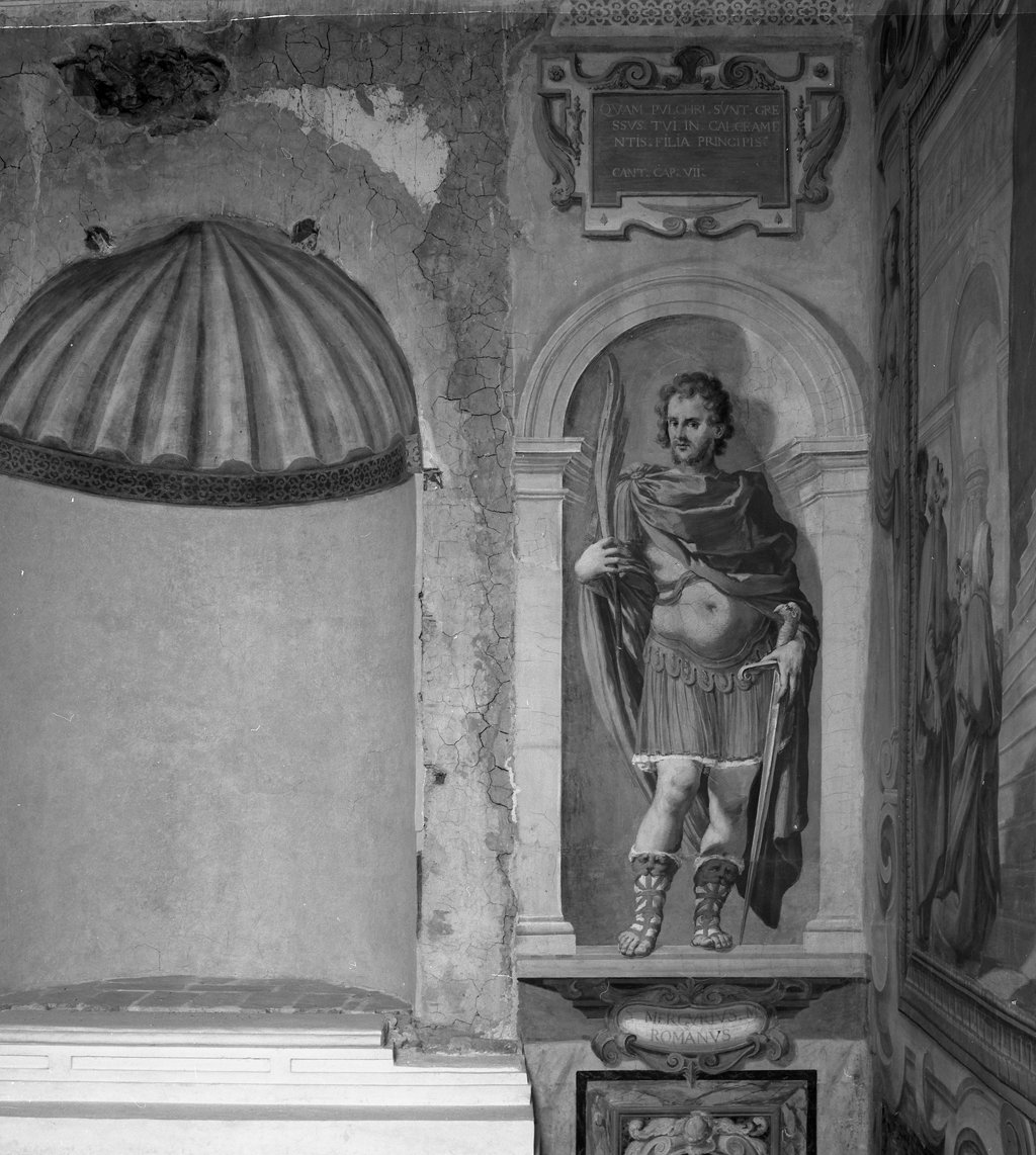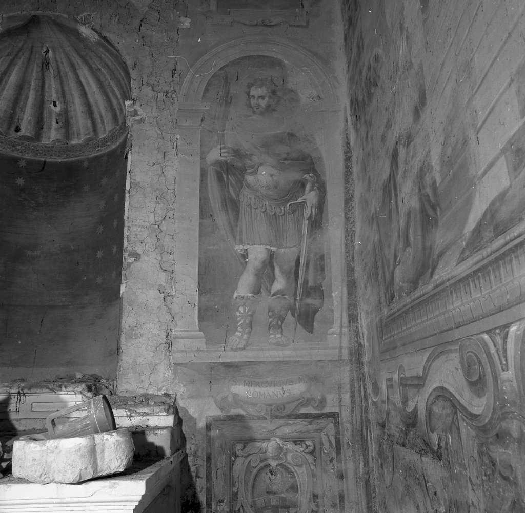- ISCRIZIONI entro il cartiglio a volute, sotto la figura - S.(ANCTUS) MERCURIUS M.(---)/ ROMANUS - lettere capitali - a pennello - latino