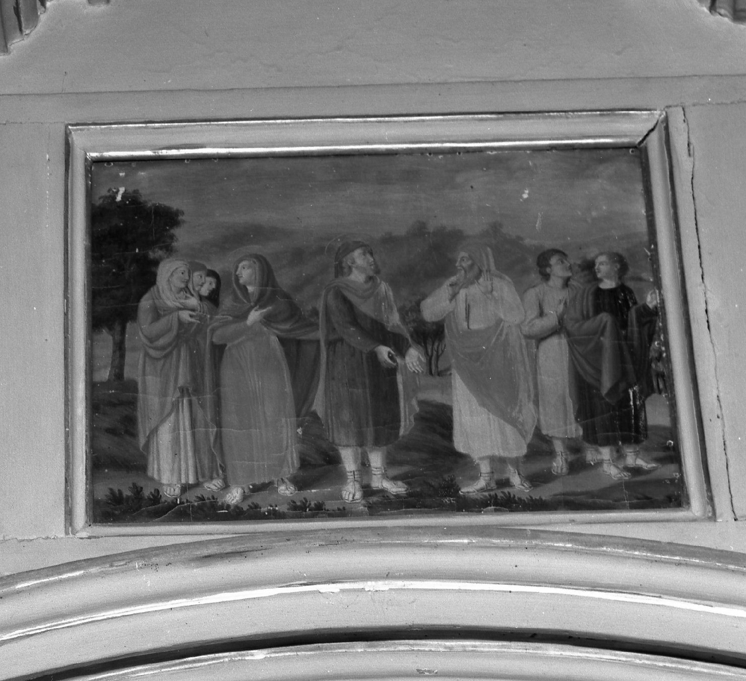 Sacra Famiglia che cerca Gesù tra i parenti. San Giuseppe e la Madonna cercano Gesù a Gerusalemme