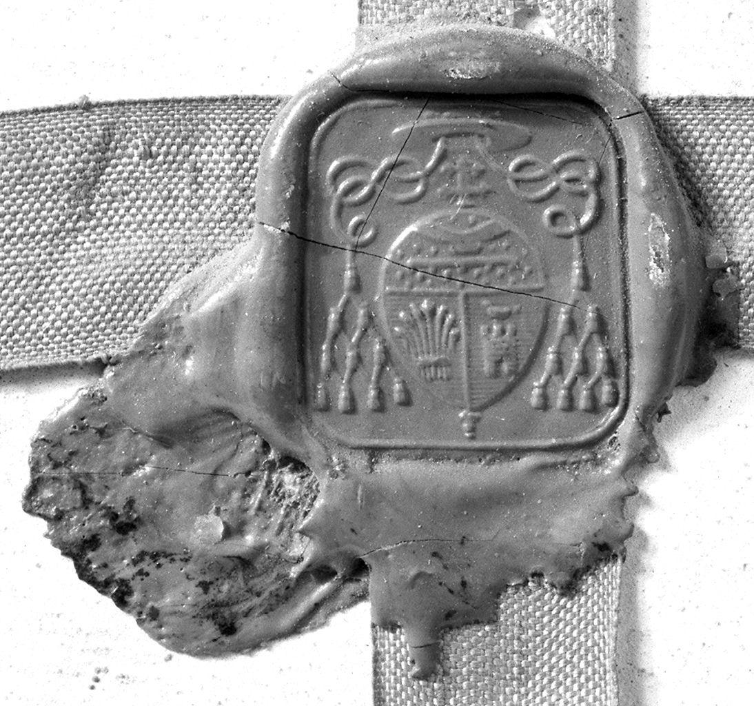 - STEMMI su bolli in ceralacca - cardinalizio - Stemma - Limberti Giovacchino - 5 - troncato semipartito: nel primo di rosso al capo d'Angiò, nel secondo d'azzurro alle spighe di grano, nel terzo d'azzurro alla torre reggente serpente e anatra