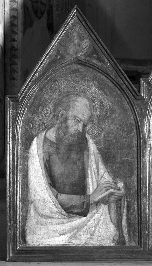 - NOTIZIE STORICO CRITICHE L'opera, che da qualche anno è stata collocata in allestimento provvisoriosull'altare della cappella Peruzzi, fu gravemente danneggiata nell'alluvione del'1966 quando si trovava nel Museo di S. Croce. L'attribuzione a Bernardo Daddi, presente sulla cartella descrittiva dell'intervento di restauro, è avvalorata dal confronto col trittico degli Uffizi (n. 3073) firmatoe datato 1328