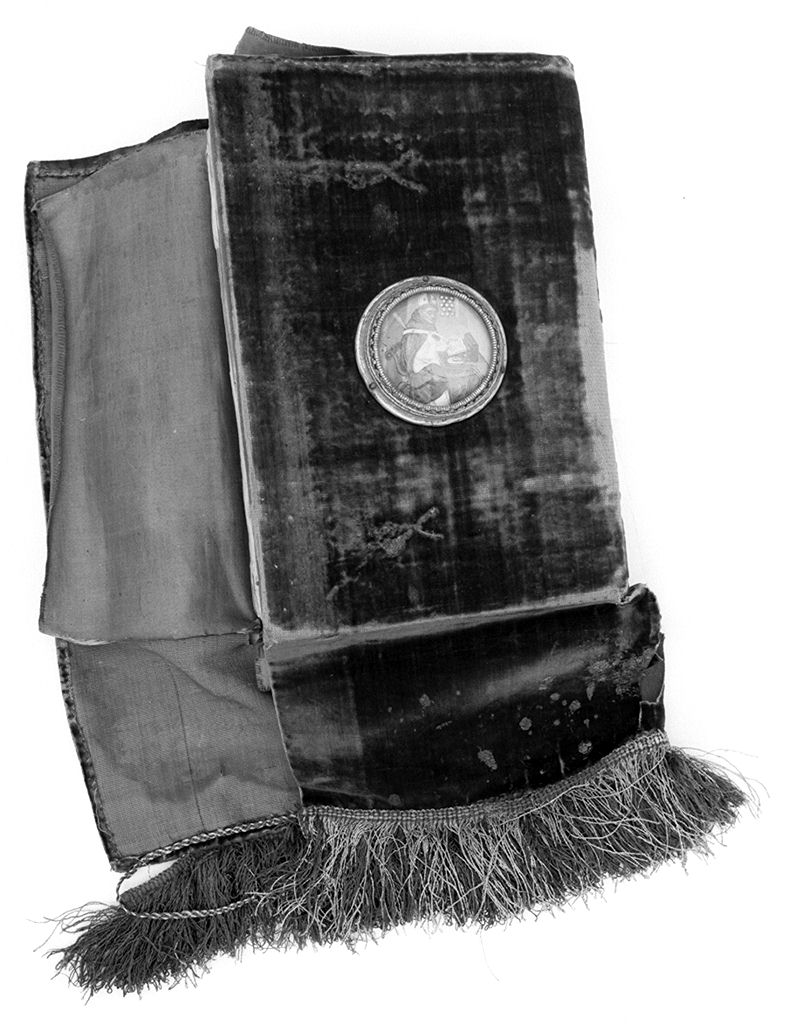 - NOTIZIE STORICO CRITICHE La coperta in velluto fodera il libro manoscrittto autografo di Sant'Antonino Pierozzi della Summa Historialis: a mio parere si tratta di un manufatto risalente alla seconda metà del XV, epoca alla quale sembra sicuramenteda ricondurre la miniatura presente in quarta di copertina, entro un medaglione