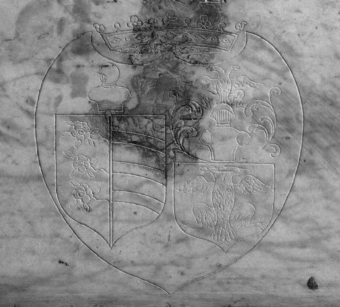 - ISCRIZIONI sulla lapide - (ALFA) CR(ISTO) (OMEGA) A GIUSEPPE DI BERNARDO DAMIANI/ E DELLA BARONESSAEGIDIA PICCINARDI FIGLIO/ NOBILE APUANO E LIVORNESE/ PER BENIGNA NATURA SOCIALE/ SUBLIMATA DA VERA RELIGIONE/ UOMO DI OTTIMO ANTICO ESEMPIO/ AI BUONI E INDIGENTI CARISSIMO/ E DEL MOLESTO ALTRUI MAL TALENTO/ TOLLERATORE GENEROSO/ VISSE ANNI 70 MORì LI 22 FEBRAIO 1820 / CATERINA TANCREDINI DEI CONTI PALATINI/ DEL CONTINUO LACRIMARE NON STANCA MAI/ AL MARITO INCOMPARABILE POSE - lettere capitali - a solchi -