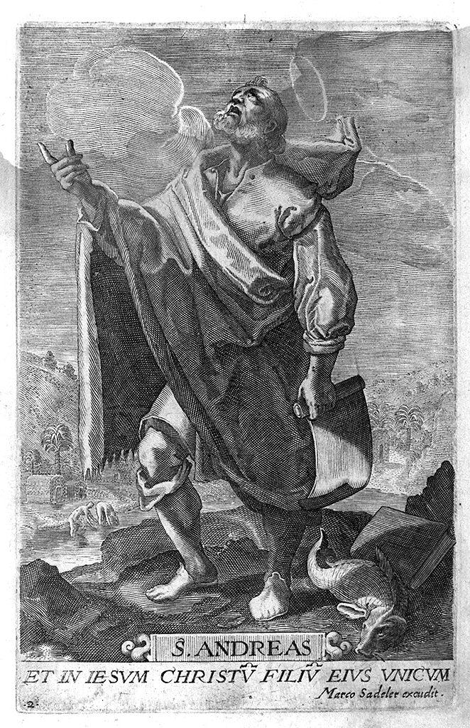 - ISCRIZIONI al centro, in una targa, a p. 20 - S(ANCTUS) ANDREAS - corsivo -