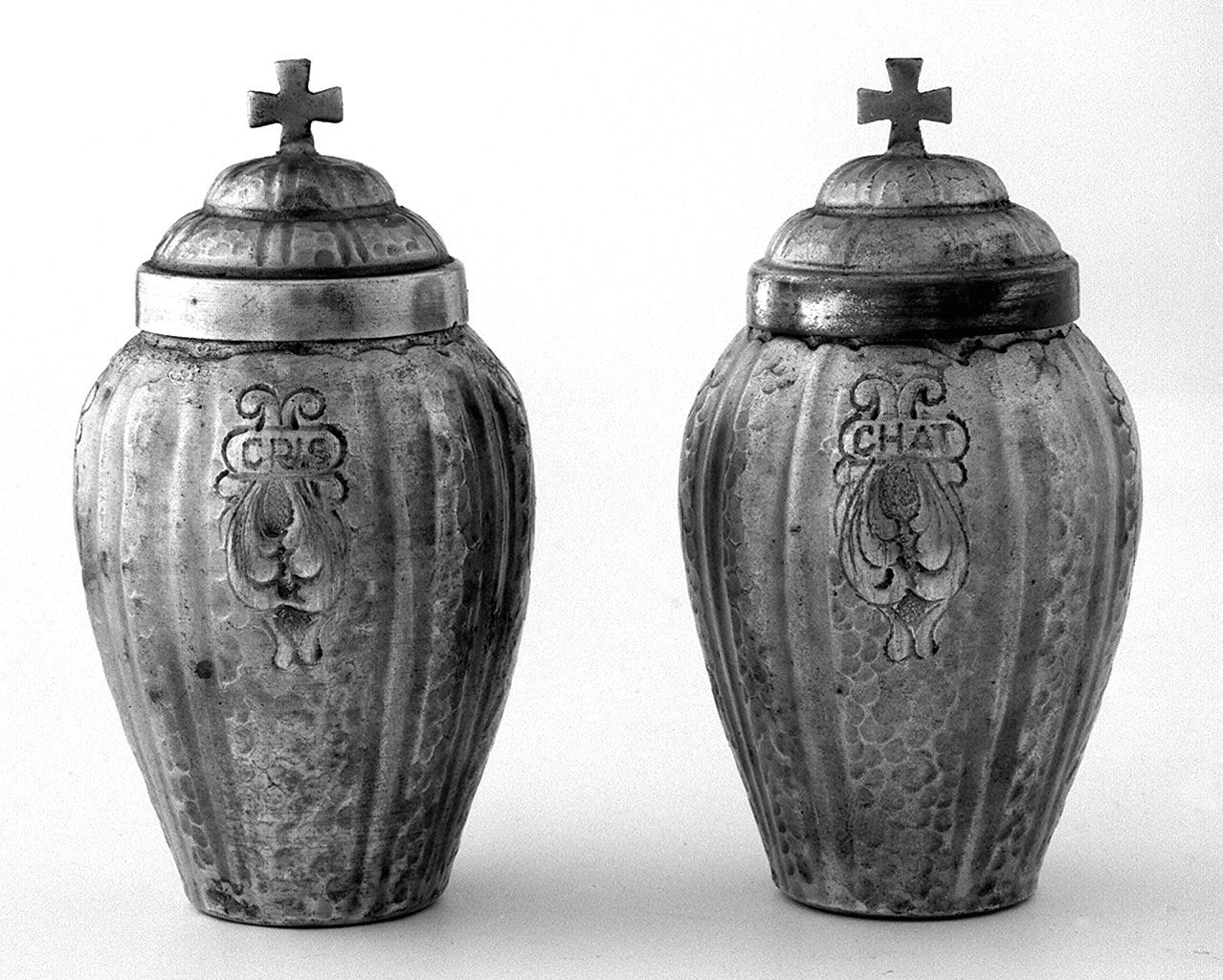- ISCRIZIONI al centro del vasetto - CHAT(ECHUMENORUM)(!) (scil. OLEUM) - lettere capitali -