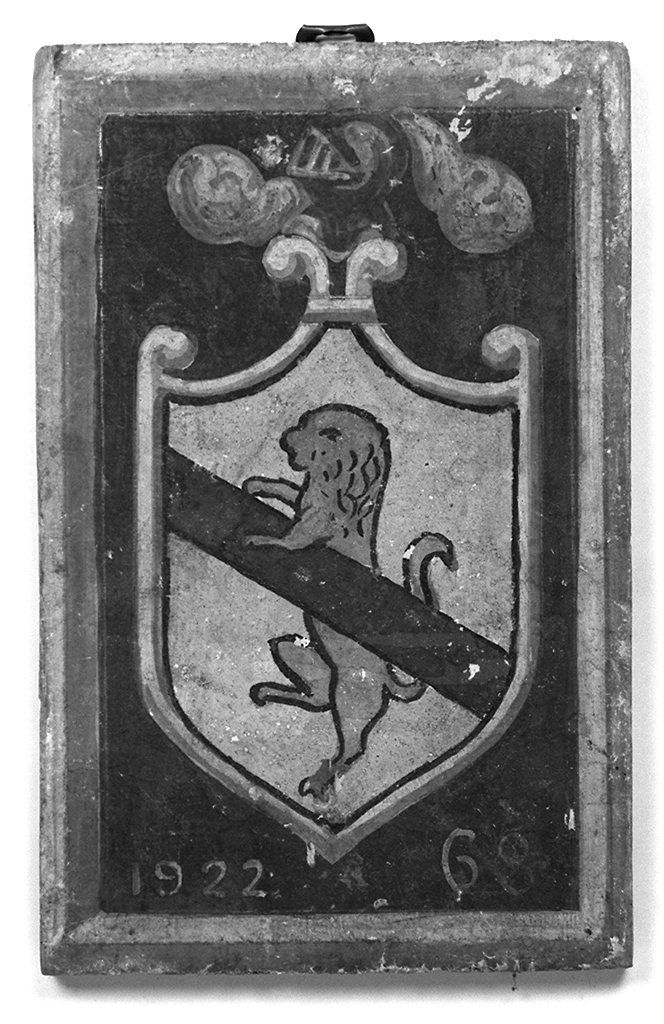 - STEMMI gentilizio - Stemma - Guerrieri - scudo a pelta sormontato da elmo piumato. Blasonatura: d'oro al leone reggente una banda d'azzurro