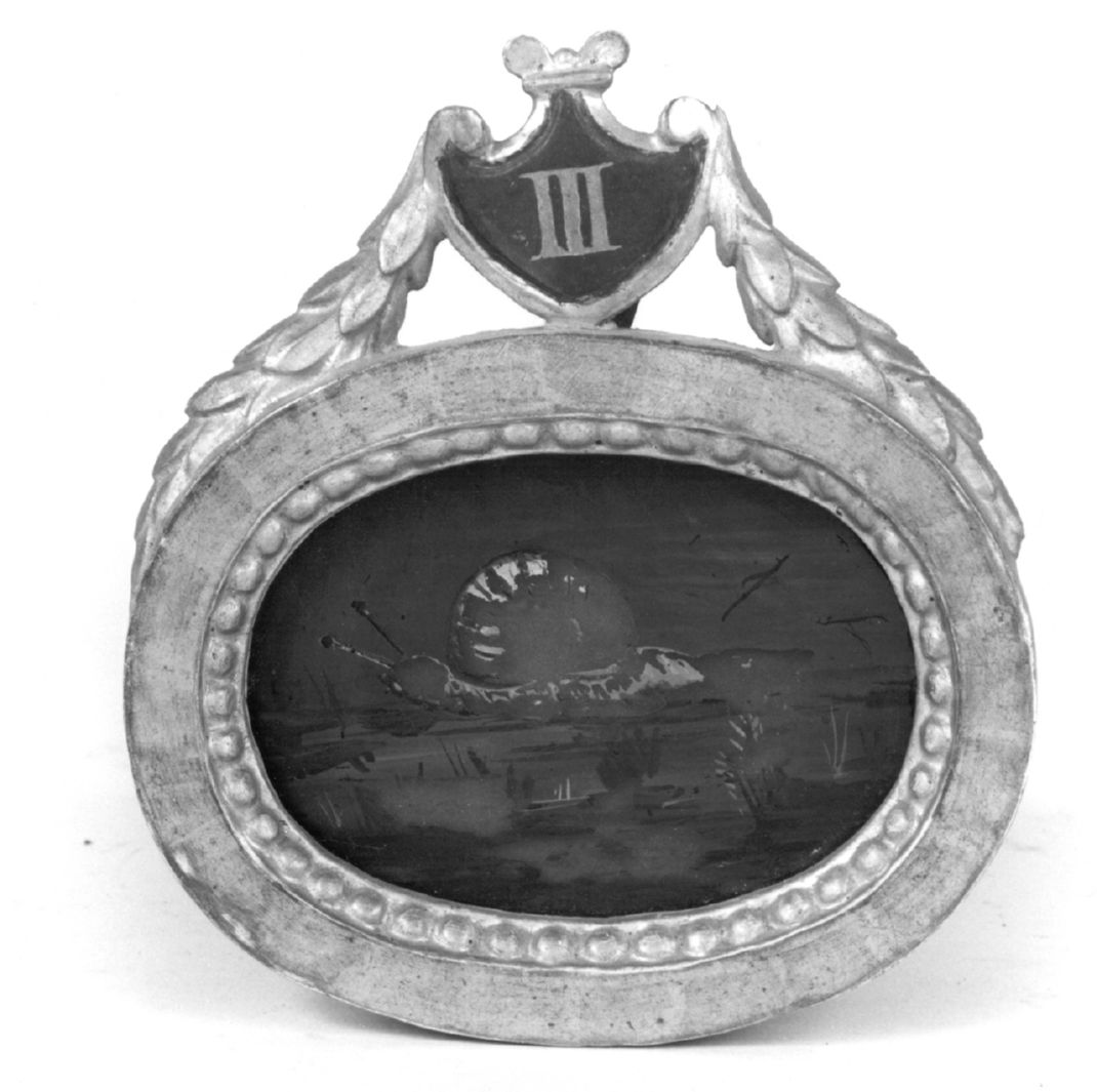 - NOTIZIE STORICO CRITICHE Il piccolo dipinto su vetro fa parte di una serie raffigurante gli emblemi delle contrade alleate del Bruco (v. schede NCTN 00490553/551/552/557)