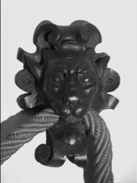 Mascheroni con protome leonina destinati a reggere la corda corrimano dello scalone d'onore