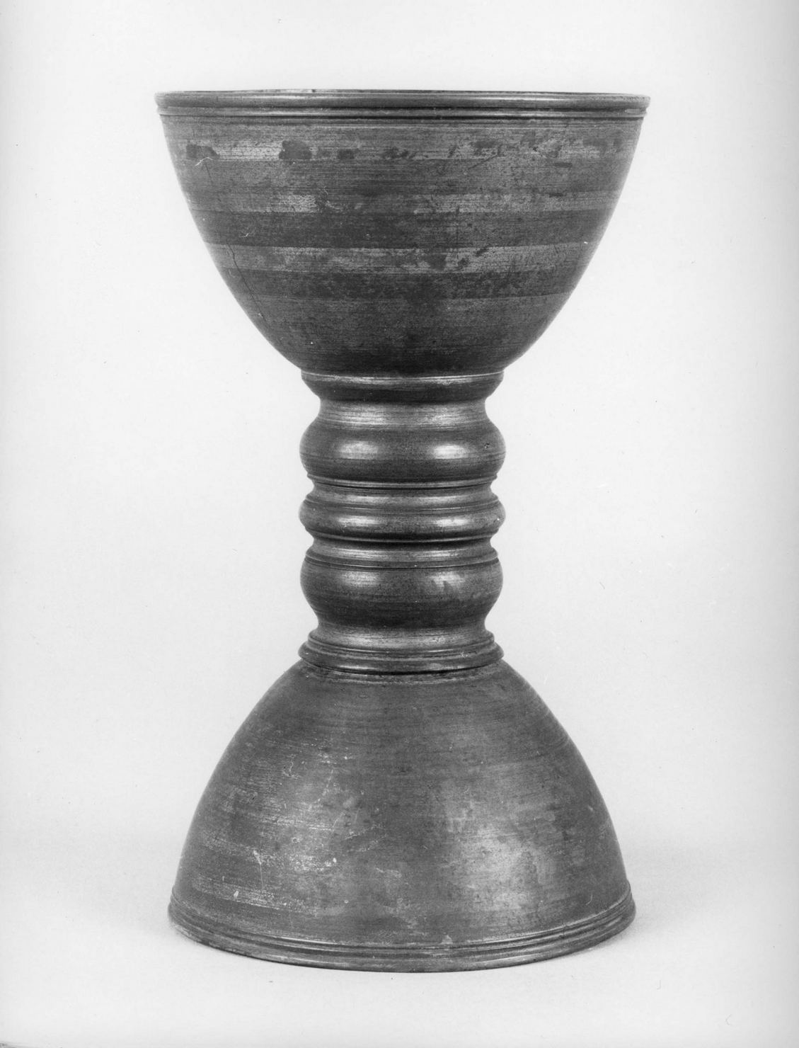 bossolo costituito da due coppe forate all'interno raccordate da un fustoformato da nodi a rocchetto schiacciati