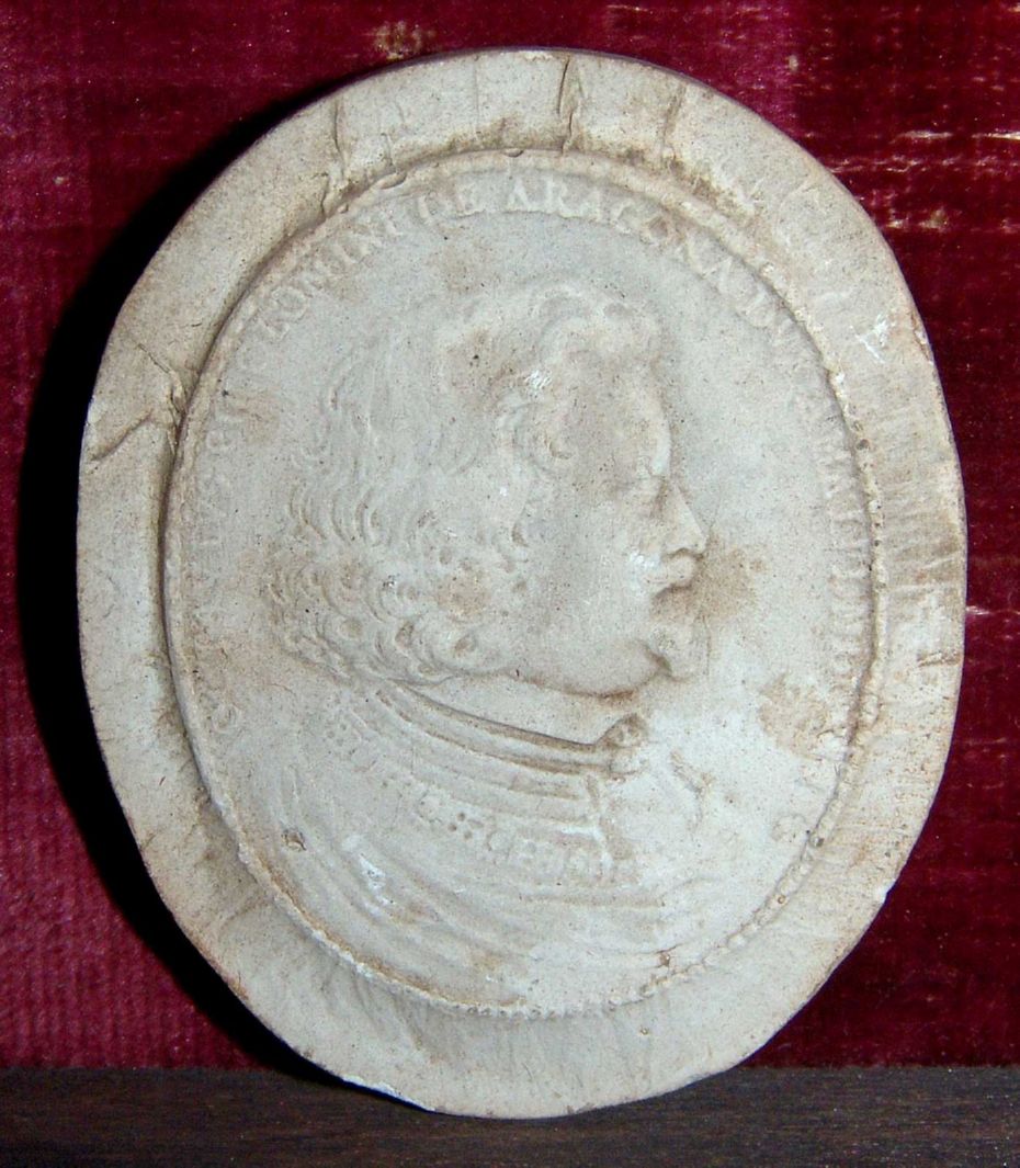 calco in gesso di forma ogivale raffigurante Ottavio Piccolomini di profilo; leggenda delimitata nella parte esterna da una coroncina a perline. Sul verso l'oggetto si presenta leggermente convesso e rialzato