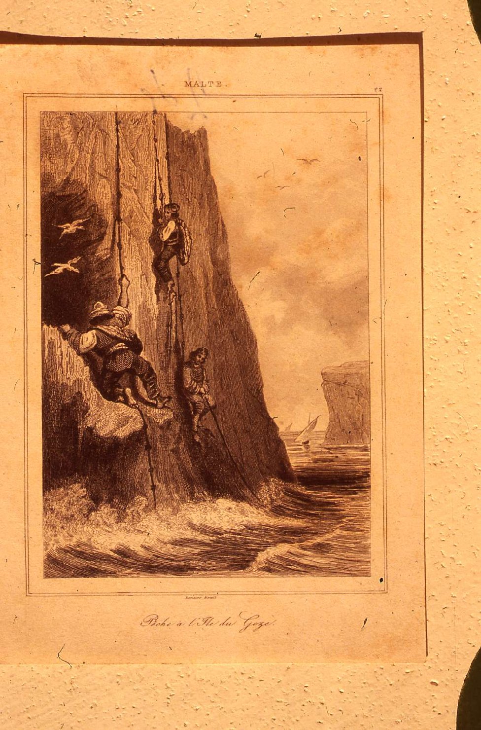 Paesaggi: scogliera a picco; faraglioni; mare. Personaggi: pescatori. Mezzi di trasporto: barche. Animali: gabbiani