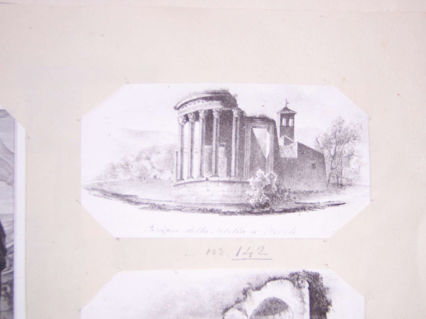 - ISCRIZIONI sotto la figurazione - tempio della sibilla a Tivoli - corsivo - italiano