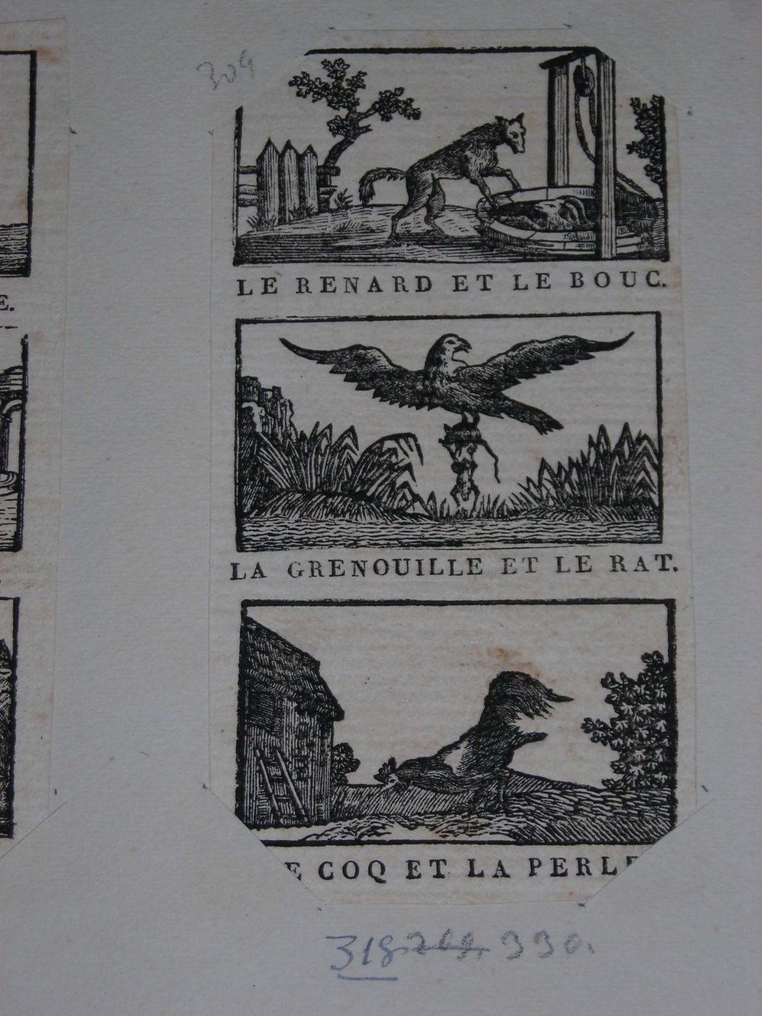 Animali: volpe; capra; rana; topo; acquila; gallo. Figure maschili. Oggetti: perla