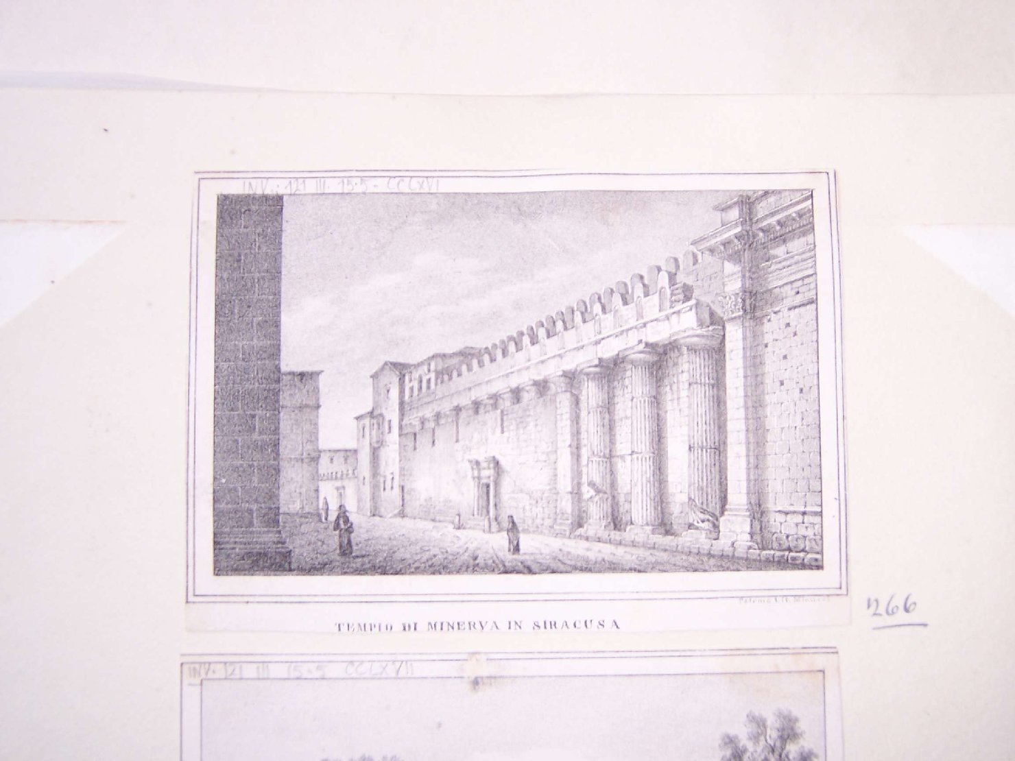 Vedute: veduta di Siracusa con via col fianco del tempio di Minerva e alcuni viandanti