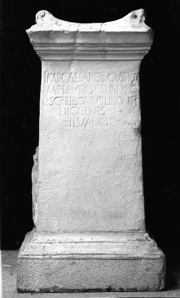 - NOTIZIE STORICO CRITICHE Il calco replica un altare funerario ritrovato in località Canalie presso Bedizzano (MS) intorno al 1890. La replica fu realizzata in occasione della Mostra Augustea della Romanità nel 1936-1937
