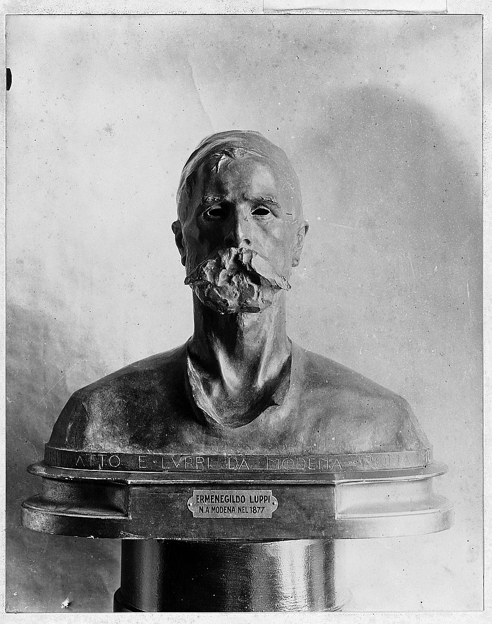 - ISCRIZIONI in basso, sulla base - AUTORITRATTO E. LUPPI DA MODENA. ROMA MCMXX -