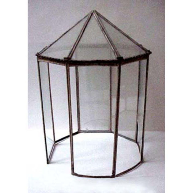 L'oggetto, probabilmente elemento di copertura di un espositore, ha la forma di un prisma ottagonale, i cui spigoli, in metallo dorato, costituiscono il telaio; le facce sono chiuse da vetri bianchi trasparenti. La parete inferiore è aperta, mentre la superiore è chiusa da una copertura piramidale
