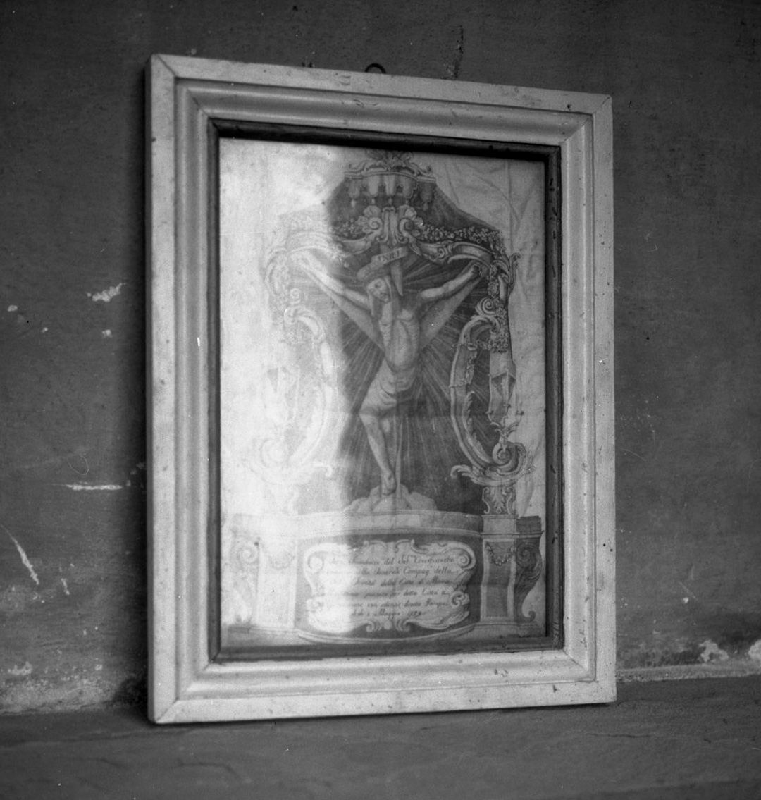 - ISCRIZIONI in basso, sul basamento - Vero Simulacro del S(antis)S(i)mo Crocifisso che/ si conserva nella Venerab(ile) Compag(nia) della/ S(antis)S(i)ma Trinità nella Città di Massa/ Marittima portato per detta Città a/ processione con solenne, devota Pompa/ il dì 3 Maggio 1779 - corsivo -