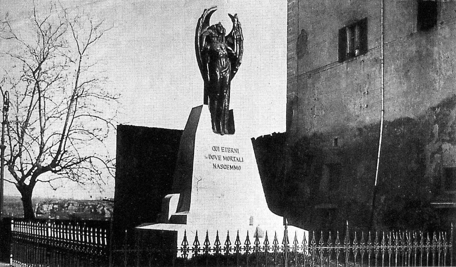 - ISCRIZIONI nella base di marmo - QUI ETERNI/ DOVE MORTALI/ NASCEMMO - lettere capitali -