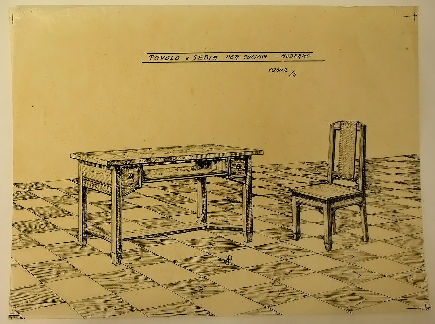 - ISCRIZIONI In alto e in basso al centro - TAVOLO e SEDIA PER CUCINA - MODERNO / 10002/2 / AP - lettere capitali - a china -