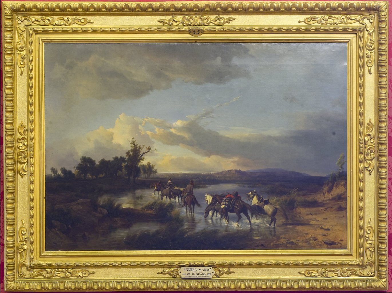 Il guado. paesaggio con animali