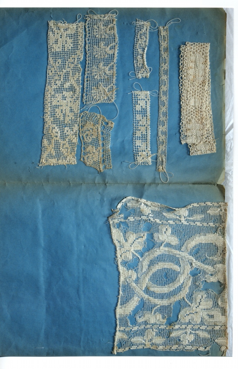 - NOTIZIE STORICO CRITICHE Ad esclusione di un pezzo a fuselli affine per tecnica ed effetto ai nn. Inv. Stoffe 4574-4575 ed ispirato alla produzione italiana dei secoli XVI_XVII, le due pagine presentano frammenti di Filet di varia dimensione e disegno. Il filet, conosciuto anche con il termine modano, per lo strumento con cui viene eseguita la rete annodata, è un tipo di lavoro antichissimo che utilizza le modalità di esecuzione delle reti dei pescatori. Questa tecnica conobbe nel XVI secolo un grande sviluppo, al di fuori della produzione aulica, utilizzata nell'abbigliamento ecclesiastico, nell'arredo e nella biancheria domestica.Il suo sviluppo coincise con la pubblicazione di numerosi libri di modelli, che andarono a determinare un repertorio internazionale basato su motivi geometri,vegetali, animali, spesso disposti secondo uno schema compositivo simmetrico, imposto anche dalla rete di base. Questi campionari documentano tali decori, ad esclusione del pezzo A della II Pagina ispirato ai motivi naturalistici sei -settecenteschi. Esemplari simili a questi raccolti all'interno di collezioni ottocentesche sono datati dal XVI al XVIII secolo (T.Schoenholzer nicols-J.Silvestri, La Collezione gandini, Merletti,ricami, galloni dal XV al XIX secolo, Panini ed,2002, pp.144-160) in considerazione del lungo permanere del repertorio decorativo. Resta tuttavia problematico definirne l'ambito croligico esatto in considerazione del fatto che nel XIX secolo sono stati ampiamente utilizzati e riprodotti in scuole e laboratori , tra le quali una delle più eccellenti per tecniche e disegni era quella di Lucciano e Quarrata (S.Fortunato, La ditta di merletti e ricami Francesco Navone,Edifir, 2006,pp.34-39 )