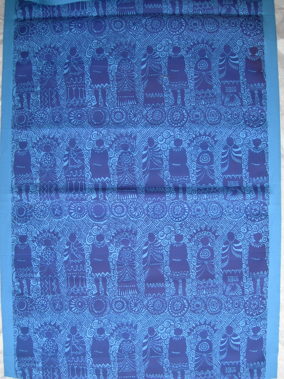 Tessuto di cotone azzurro con stampa serigrafica in blu