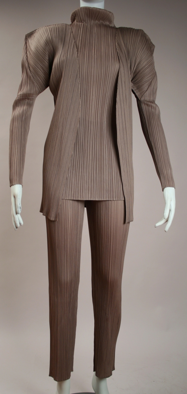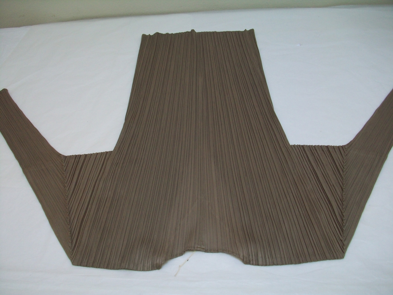 - NOTIZIE STORICO CRITICHE Il capo appartiene alla linea "Pleats Pleas" dello stilista giapponese Issey Miyake, lanciata da quest'ultimo, assieme a Midori Kitamura, nel 1993. Il termine definisce anche la particolare tecnica di plissettatura che caratterizza tale linea di prodotti, messa a punto da Miyake per ottenere un sistema di pieghettatura permanente, cui i singoli capi venivano sottoposti solo dopo essere stati assemblati. Dal 1996, la linea si avvalse anche della collaborazione di noti artisti, come Yasumasa Morimura, il fotografo Nobuyoshi Araki (noto anche per l'erotismo a tratti estremo delle sue creazioni), Tim Hawkinson, Cai Guo-Qiang