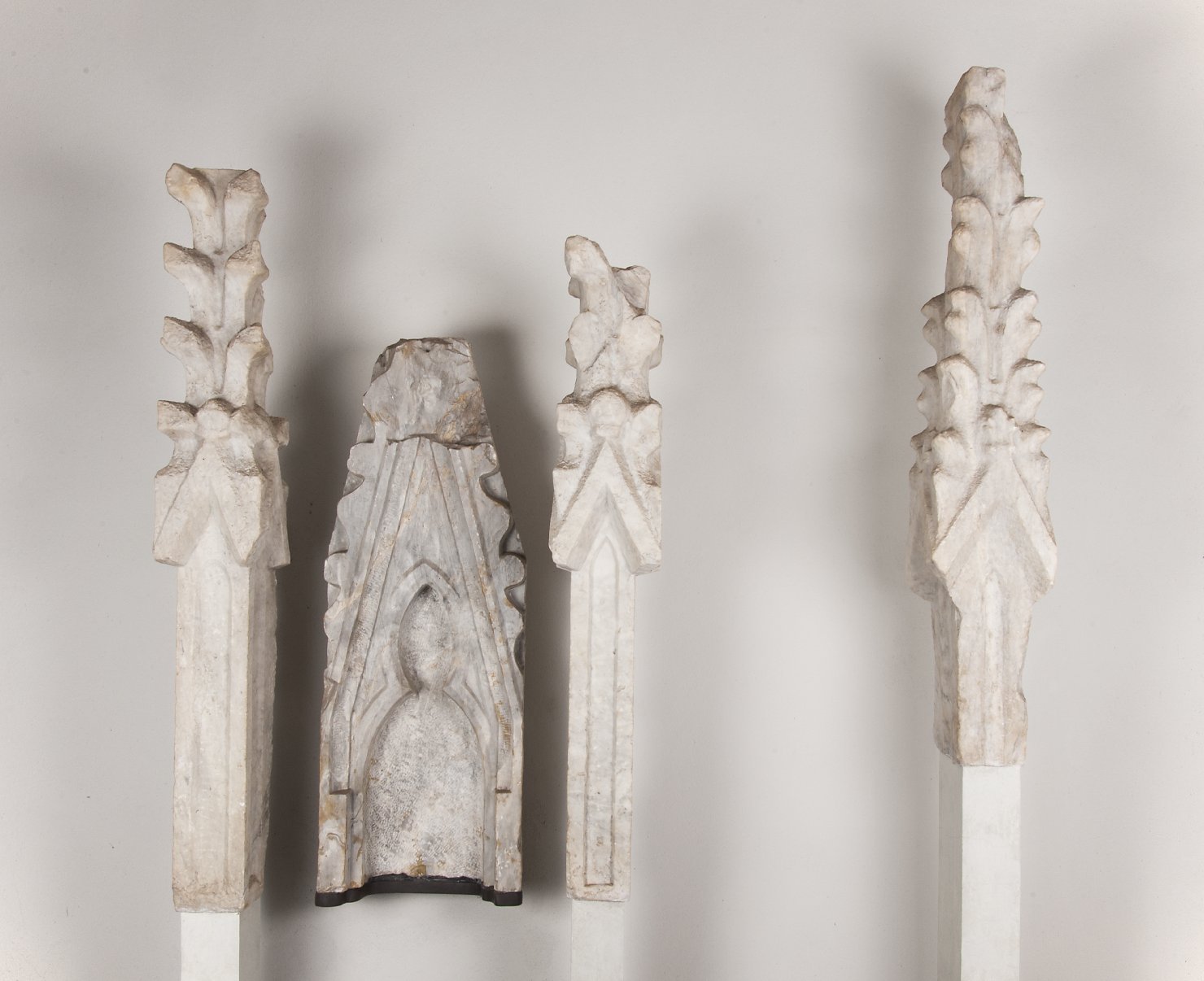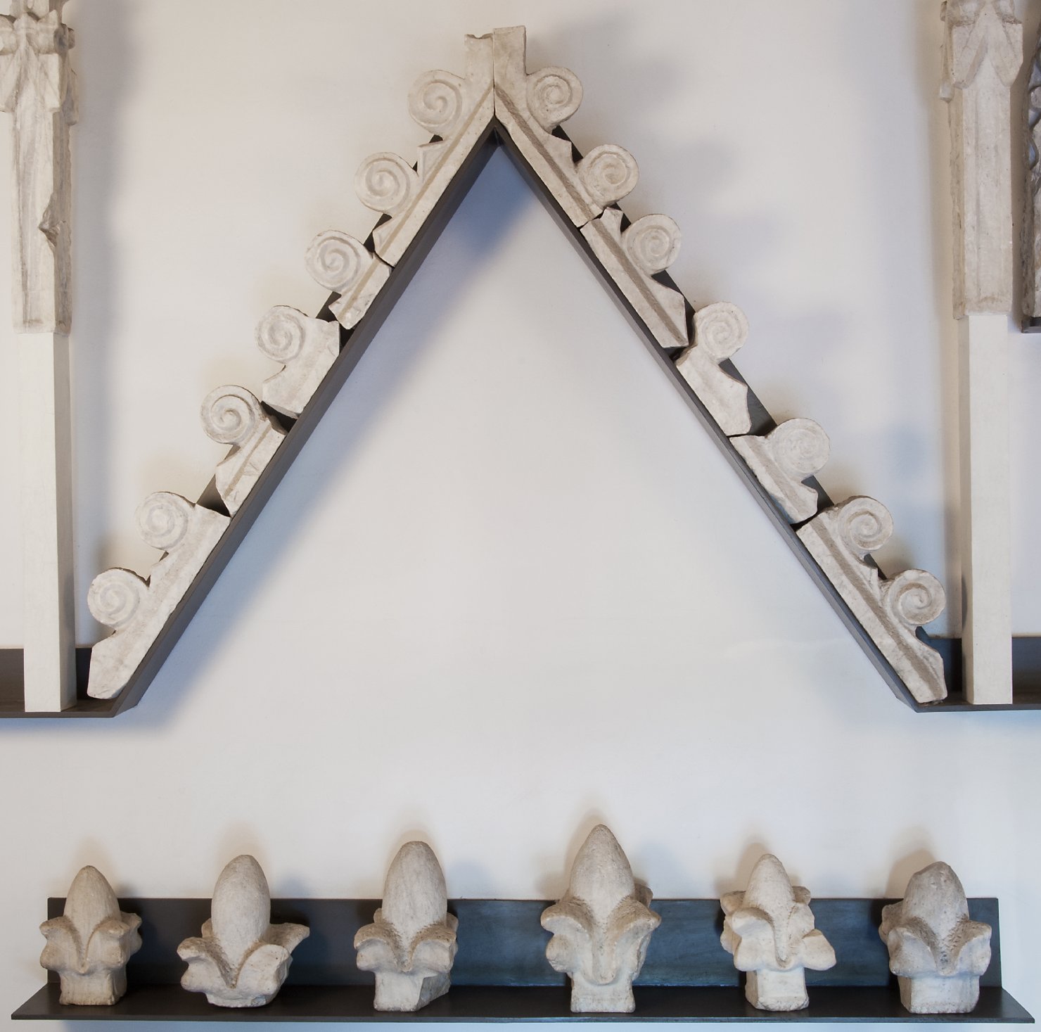 Serie di sei flèches, quattordici gattoni, un frammento di arco trilobato e sei elementi scolpiti a forme di fioroni