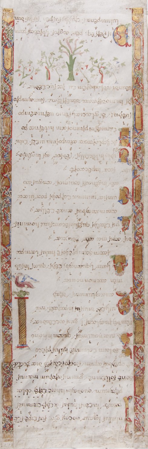 - NOTIZIE STORICO CRITICHE L'exultet è un rotolo in pergamena che veniva svoltato dal diacono dall'ambone nei riti del Sabato Santo durante i quali veniva intonato il canto della Resurrezione e nel contempo acceso il cero pasquale. Le raffigurazioni che illustravano il testo erano dipinte in senso contrario rispetto al cantore che doveva leggere e intonare i canti in modo che potevano essere ben visibili dai fedeli. Generalmente queste proponevano scene dell'Antico e del Nuovo Testamento e i momenti più importanti legati strettamente alla liturgia di Pasqua. Il rotolo qui esaminato scritto in un'ariosa beneventana è ascrivibile sia per il testo che per le miniature ad un area dell'Italia meridionale databile alla prima metà del secolo XI. L'inno dell'exultet è qui trascritto nella sua redazione più ampia e si inserisce in una situazione di confine fra la liturgia beneventana e quella franco romana. La notazione musicale è del tipo beneventano, senza linee né chiave ma con guidone. Difficile è stabilire con esattezza il centro di produzione dell'exultet. La scarsità della gamma dei colori della decorazione e la fattura grafica che lascia molto spazio al disegno di base evidenziandone il contorno e le parti interne delle figure, la struttura delle barre d'incorniciatura dove tralci e foglie stilizzati si mescolano a catene, intrecci nastriforme e nodi serrati di probabile origine islamica, fanno supporre la provenienza dell'Exultet da un monastero benedettino di area campana, mentre i caratteri paleografici della scrittura lo fanno avvicinare ad un'opera proveniente da uno "scriptorium" pugliese fortemente legato alla produzione beneventano-cassinese. L'opera, come suppone la studiosa Calderoni Masetti, per il diffuso utilizzo dell'oro nei motivi decorativi, dovrebbe provenire da un centro molto ricco. Non aveva destinazione conventuale bensì episcopale in quanto nella celebrazione delle autorità religiose non sono citati né abati né prepositi, e la sede a cui era destinato doveva essere arcivescovile. Il centro politico di appartenenza non doveva conoscere la carica dei duces in quanto nella scena dell'Exultet con la Commemorazione dei Duci non compaiono i nomi relativi ai personaggi illustrati. Purtroppo la mancanza dei nomi dell'arcivescovo, del papa e dei due imperatori in questo rotolo, e generalmente presenti in altri exultet, non permette di dare una collocazione topica e cronologica al documento. Il rotolo deve essere arrivato al Duomo di Pisa agli inizi del XII secolo. Alla fine dell'Ottocento l'Opera Primaziale consegnò il rotolo, insieme ad altri oggetti d' arte, in forma di deposito temporaneo al museo Civico di Pisa per garantirne una miglior conservazione e per un maggior abbellimento del Museo stesso. Il rotolo giunse al Museo Civico già diviso in dodici parti. Lo smembramento deve essere avvenuto fra il 1877 (anno in cui è citato dal Forster ancora intatto) e gli anni Novanta. Nel catalogo del museo del 1894 risulta infatti diviso (Supino, pp. 21-22). I vari pezzi di pergamena erano connessi tra loro mediante sovrammissione dei bordi e successivo incollaggio. Il programma illustrativo dell'Exultet si apre con l'Ultima Cena e finisce con la Commemorazione dei Duci. Dopo le prime dodici scene che ricapitolano le vicende cristologiche e che corrispondono ai primi tre frammenti, inizia il testo dell'Exultet vero e proprio le cui righe di scrittura sono continuamente interrotte e anticipate dalle immagini che si riferiscono al brano successivo. Nel dodicesimo frammento compare solo il testo che contiene la dossologia conclusiva